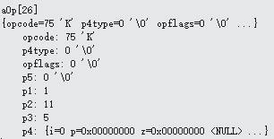 OP_Insert操作符中,sqlite3BtreeInsert函数根据p1的值确定要使用的游标,根据iKey确定新纪录的key=0,根据pData得到要插入的内容,根据p5的值来确定需要不需要后期扩展,在后端(BTree和Pager)把数据插入数据,这里插入的是我们创建的表的属性。pc加1为27,下一个要执行的是aOp[27] OP_Close。