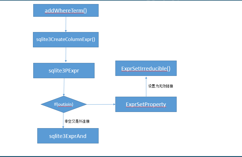 addWhereTerm函数:拆分where子句中条件表达式列表,将条件语句添加到select语法树中。根据给出的条件,进行判断,如果结果是true返回,如果是false就不返回。