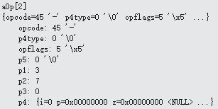 OP_If操作符在&aMem[pOp->p1]不为0的情况下会返回p2的值给pc,让下一个操作符由p2决定,但是由于 &aMem[pOp->p1]的值为0,经过sqlite3VdbeRealValue函数转化为浮点数后还是0.0,所以if判断为假不执行。pc在for循环后加1,为3,下一个要执行的是aOp[3] OP_Integer。