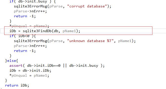 此函数执行流程: 第一:通过红色网方框中的函数把表名的第一部分赋值给pName返回数据库索引。进入此函数