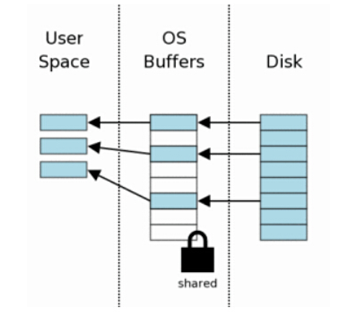当共享锁取得之后,我们就可以开始从数据库文件中读取信息了。在当前环节,我们已经假定了系统缓存是空的,所以信息必须首先从读硬盘读取到系统缓存中去,然后从系统缓存中传递到用户空间。针对之后的读取,部分或者全部数据都可能可以从操作系统缓存中取得,所以只需要传递到用户空间即可。