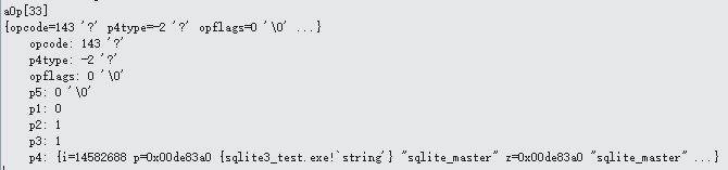 OP_TableLock操作符功能就是在共享缓存的前提下给我们要创建的表加写锁,但是由于我们没有使用共享缓存,所以这里没有对表加写锁。pc加1,为34,下一个要执行的是aOp[34] OP_Goto。