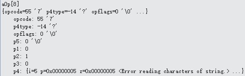 在OP_OpenWrite操作符中,allocateCursor函数根据p3的值确定操作的是main数据库,根据p4确定分配 的字段为5,根据p1的值确定这是游标的索引,为VDBE实例v创建一个指向BTree游标,然后sqlite3BtreeCursor函数根据p2确定刚刚创建的表创建一个写游标,这个游标和为VDBE实例创建的游标是有联系的。pc加1为9,下一个要执行的是aOp[9] OP_NewRowid。