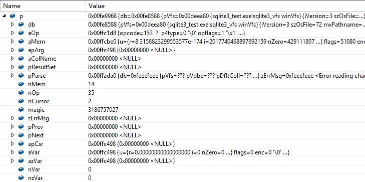 进入sqlite3VdbeExec后,先进行一些变量的初始化和配置,下面进入到for循环中,pc为循环因子,初始为0。然后进入switch语句中,来执行之前生成的操作符。